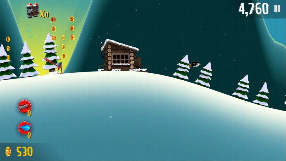 后期才会出现的装备,最稀有也是最强大。滑雪车上可以乘坐三名乘客,除了你之外,还能骑上企鹅,雪人,老鹰,也就是说最多可以承受四次冲击。不过滑雪车最好还是不要让它爆掉,因为到了后期滑雪车就是保命用的东西,雪崩在你的身后猛追不舍,稍不留神就会完蛋。但是滑雪车笨重,很难飞起来,这就要看你的技术如何了。安趣小编教你一个技巧,建议你让滑雪车经常保持喷火焰状态,这样就能冲开你无法飞跃的石头。还有就是要保持滑雪车上高朋满座,这样就可以借助动物来抵消冲击。