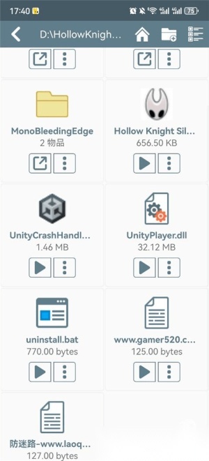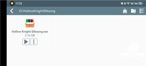 5. 解压完成后回到原界面,就能看到游戏文件夹,找到并选择“\HollowKnightSilksong.exe\”文件即可。