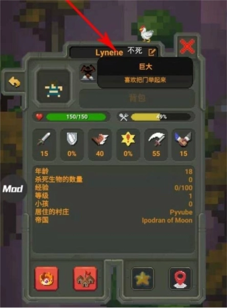 3、劈砍几次后,就能够点击那个角色来查看其性格与特征。要是被闪电劈死了,就换另一个角色继续操作。