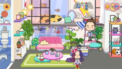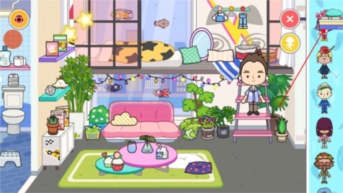 把人物安置到房间里后,就能点击已购买的家具用品来装修房屋了。