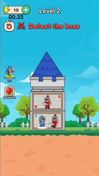 《最强仆从》是一款策略类闯关游戏。在游戏中,玩家将化身为一名骑士,核心目标是清除关卡内的所有敌人。当进入关卡后,你会发现包括主角在内的每个角色头顶都显示着数字,这个数字对应的是角色的等级——等级更高的角色能够击败等级较低的对手,而且在战胜敌人后,还能吸收对方的等级数值来提升自身。现在,就按照这样的规则去开启你的战斗闯关之旅吧!