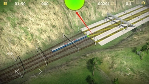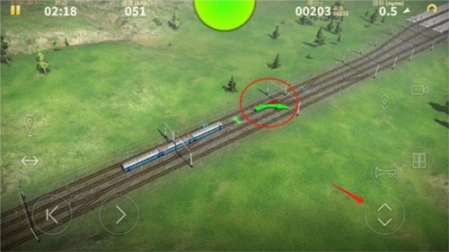 6、按照指示能够提前知晓前方道路状况,点击图中所示按钮可切换火车的行进方向,确保全程绿灯通行无阻。