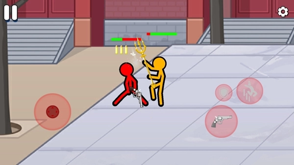 5、进入游戏后,画面会呈现出相应的场景,玩家需要操控火柴人对敌方的火柴人发起攻击;