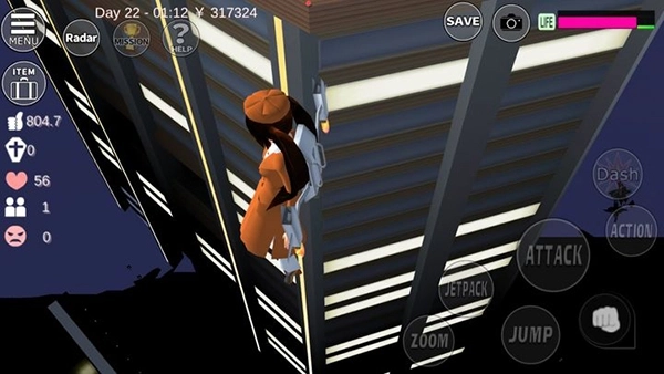 3、打破常规校园设定:开着复古轿车在街道穿行、启动喷气背包飞越教学楼、甚至潜入秘密实验室触发特殊事件,玩法的边界不断拓展。