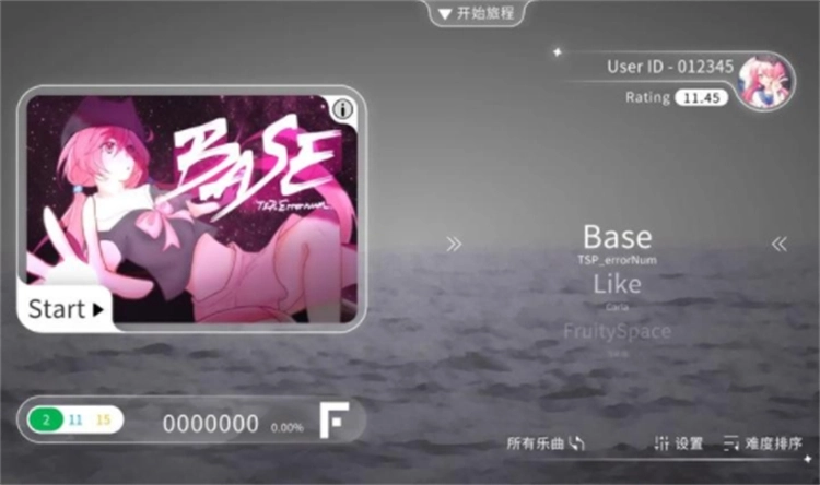 3、设置好后,选择要挑战的曲目,以及难度;