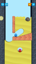 3、新增了物理结构相关的玩法,墙壁设定为不可破坏,需要操控小球撞击蓝色小球,使其坠入沙坑,这样才能让它们成功重逢。