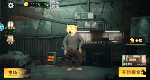 1、进入游戏后,你可以看到一个狗头人正在欢快的跳舞,点击开始摸金。