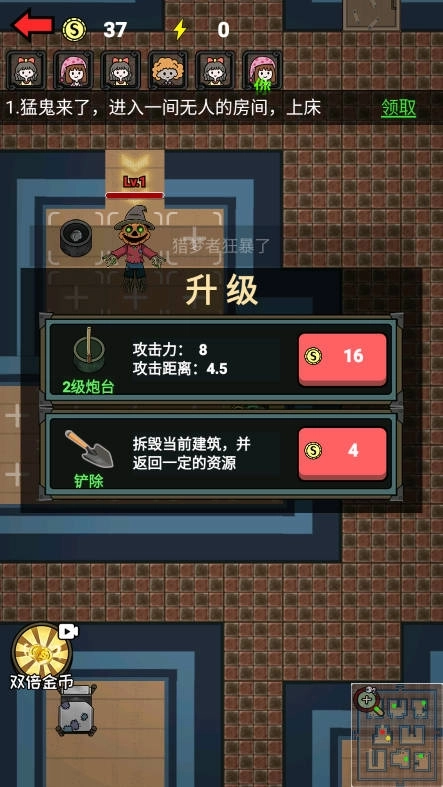 4、开局阶段建议先搭建2到3座炮台,利用交叉火力来有效抵御第一波猛鬼的进攻;要是和队友的位置相邻,可以商量着分工布置防御,让火力覆盖的范围更合理。