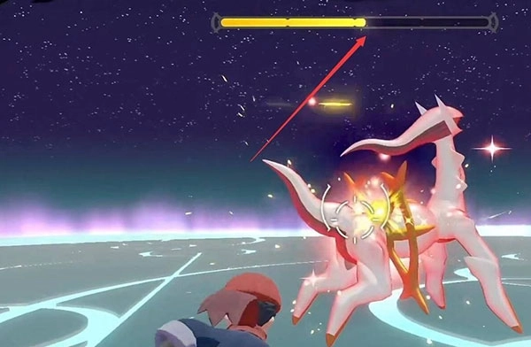 4、当护盾完全破碎,阿尔宙斯会展现出它的本源形态。这时候投掷刻有符文的“神谕之球”,就能完成这场跨越时空的契约缔结。