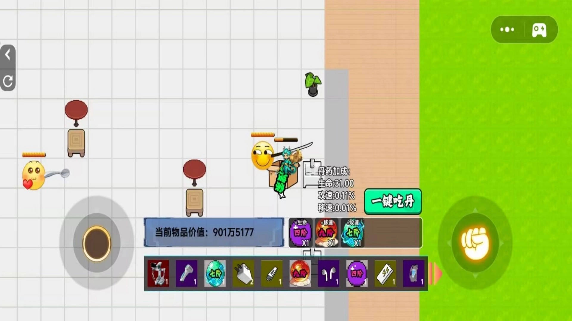 吃丹修仙1游戏是一款通过在校园摸金来进行生存挑战的冒险游戏,这次要搜集的物资不再是那些枪械和医疗用品,而是那些极品仙丹哦,当你吃到的仙丹越大,就会变得越发的厉害,让我们一起在摸金过程中感受独一无二的修仙快感吧。