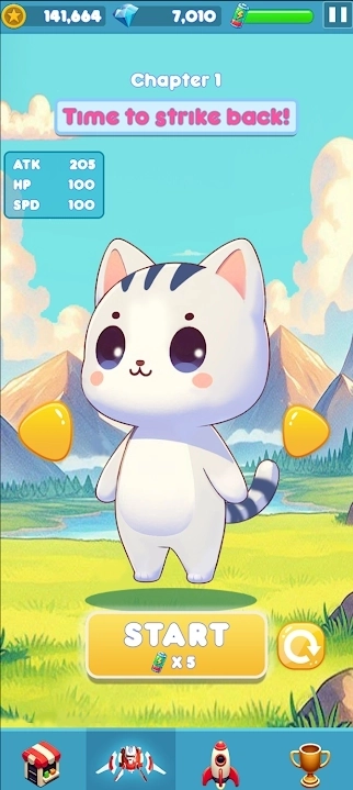 2、通过灵活的手指操作,玩家可以控制猫咪对敌人进行精准射击,并灵活使用技能,展现出独特的战斗风格。