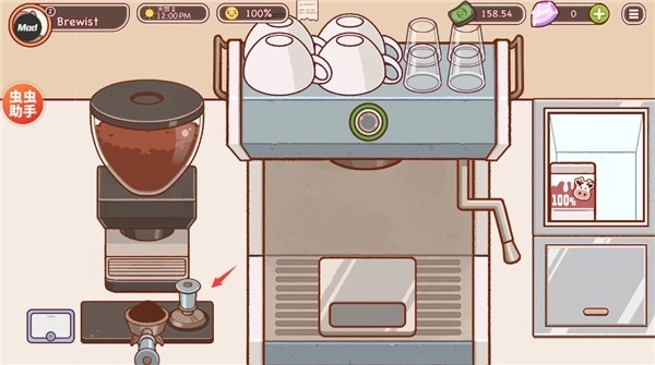 2、进入场景将中间的设备移到下图中的位置获取咖啡粉