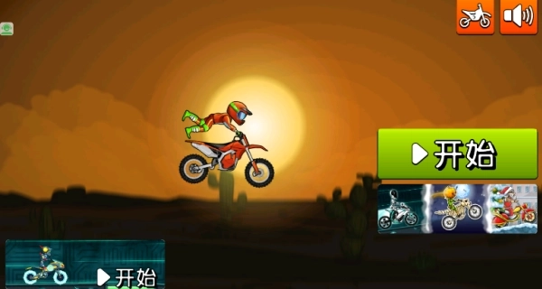 1、进入游戏后,你会看到一个小人骑着帅气的摩托车挑战关卡,点击开始按钮即可。