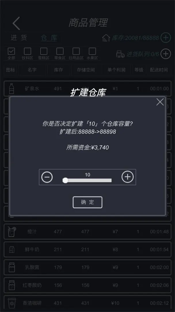 3.玩家依据初始资金,采购日常商品上架售卖,开启经营。