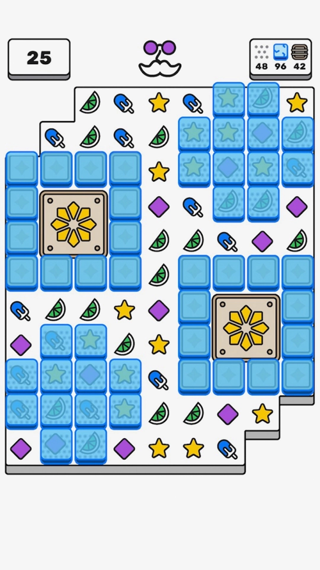 2.面对含障碍的关卡时,优先消除障碍周边的彩块,破除障碍对消除操作的限制,为后续大面积消除与珍宝收集创造有利的操作空间。