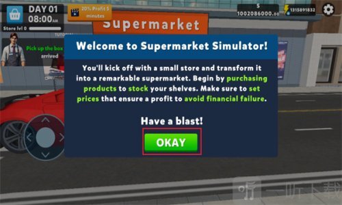 1)进入游戏场景后,会出现一条关于超市的提示信息供玩家阅读,阅读完毕后点击【okay】按钮即可。