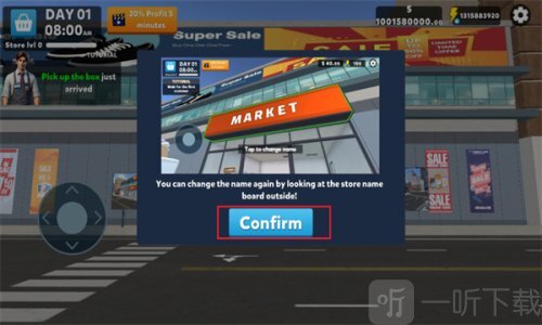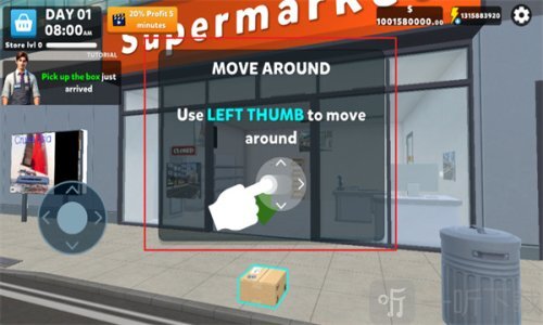 4)超市牌匾安装完成后,可滑动屏幕左下角的圆形按钮,以此实现角色的自由移动。