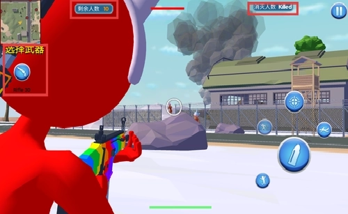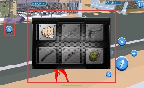 3、依据战况灵活调整策略,点击左侧的武器按钮来切换装备,像拳头、手枪或者步枪这类不同的武器,能有效增强战斗时的灵活性。