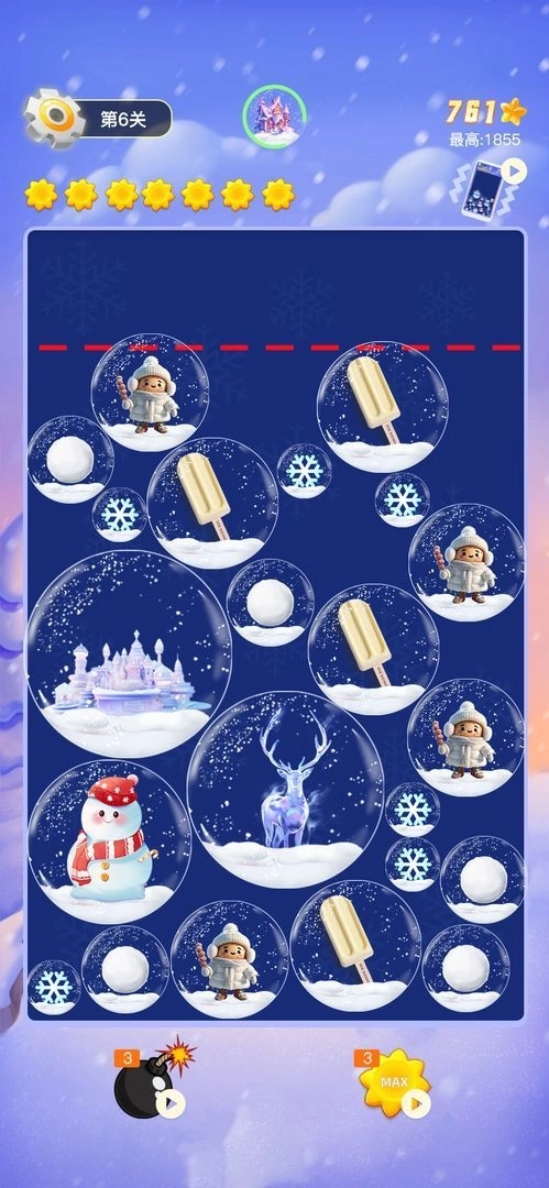 土豆的冰雪之旅游戏是一款卡通画风的合成闯关游戏,游戏的背景是在雪地当中,玩家要将屏幕中心所有带有冰雪气息的人物进行合成,只有当两个相同的人物触碰在一起的时候才能够进行融合,每次融合都能够让你获得分数,只有在关卡中达到一定的分数才能过关哦。