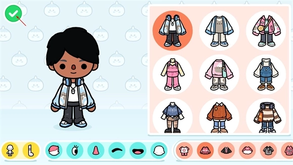 4、可自由点击来更换角色形象,待所有形象都选好后,点击左上角的绿色按钮就能完成保存。