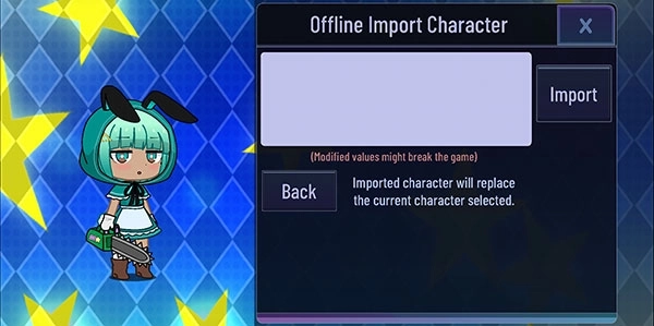 点击“import”按钮可以展示人设,“Back”按钮则用于清除已输入的代码。