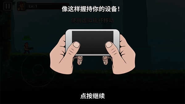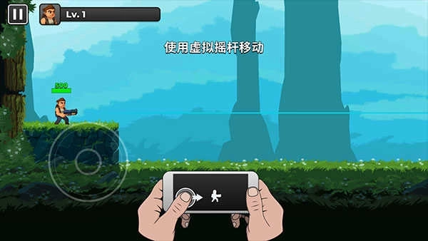 3、左上角可以暂停游戏,使用虚拟摇杆控制人物移动,前进。