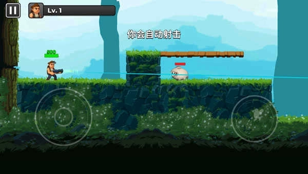 5、两个木板平台之间可以通过左边轮盘的上下键互相跳跃,靠近敌人会自动射击。