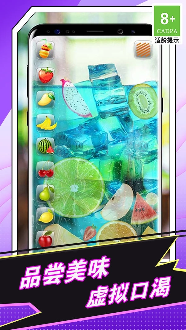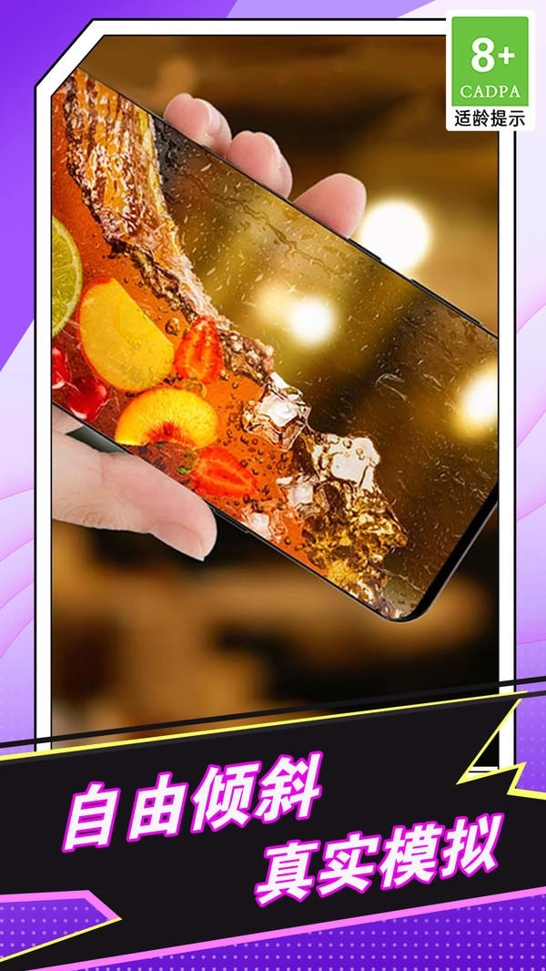 3、向左或向右转动杯子,就能体验到真实的冰块碰撞声与苏打泡泡破裂的声音。