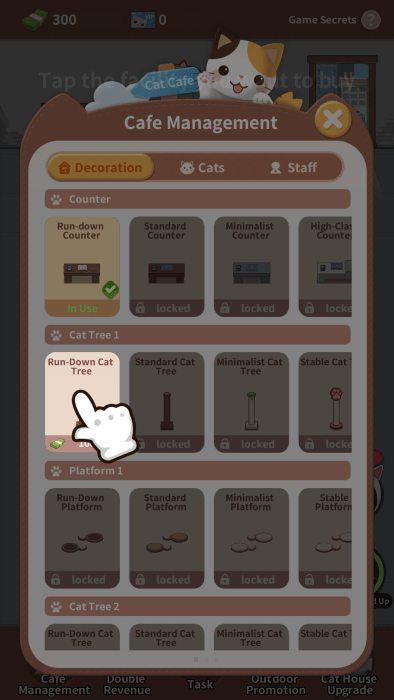 3、购买你的猫树放置,在解锁放置猫咪的平台。
