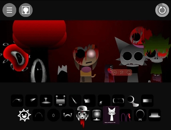 3、sprunki模组的特色在于恐怖模式,我们现在把最后一个黑帽子拖到角色上。