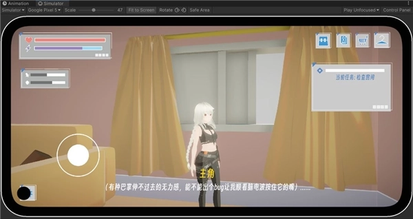 BUG命定之人游是一款参赛作品,无论是画面还是创意都非常用心,在游戏中,你将结识一位可爱的少女角色,通过引导少女的行动,让她在房间里开始探索,寻找各种有趣的互动内容,完成解谜挑战,喜欢美少女题材与解谜玩法的朋友们可以来尝试一下。