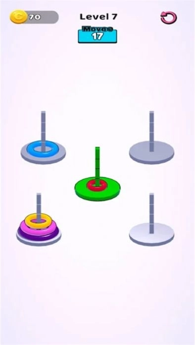 RingStack:SizeSorting游戏是一款不需要网络也能正常畅玩的手机单机闯关游戏,游戏中玩家需要仔细观察每个圆环的颜色,然后进行大小排序,每个颜色尺寸不同,排列的方式也是不同的哦,每次挑战都有时间限制,玩家一定要把握好时间哦,游戏还有挑战模式,比赛模式,单机模式等多个不同难度的级别关卡等你来选择!