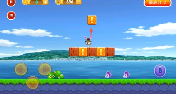 3、我们在遇到这样的砖块的时候,可以跳跃去顶一下,你可以获得更多的分数的。