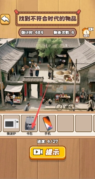 2、比如进入到找到不符合时代的物品的关卡中,我们需要在画面中点击进行寻找的。