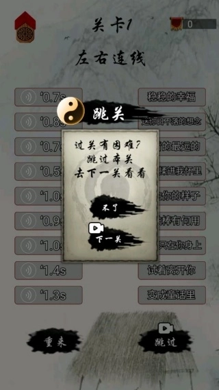 3、遭遇难度较高的关卡时,可使用跳关功能直接进入下一关。