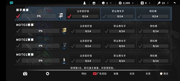 3、剧情模式科学进阶|从「新手训练营」起步,逐步挑战Moto3入门赛→Moto2中级赛→Moto1巅峰赛,每阶段匹配专属车辆与赛道,系统化锤炼压弯角度、油门控制、线路预判三大核心技巧
