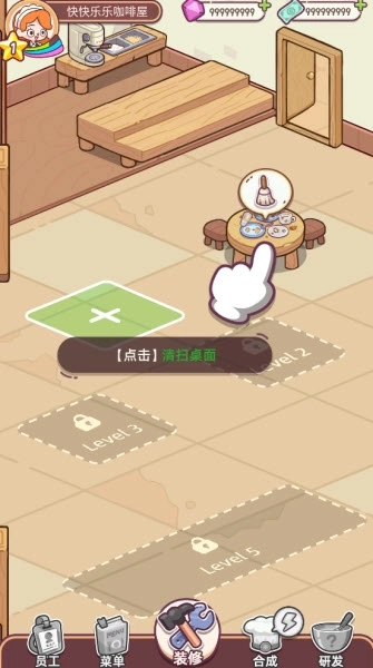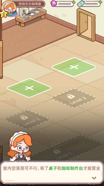 4、首先需要购买桌子和咖啡制作台才能正常营业。