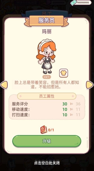 5、提升等级可以提高员工的能力同时增强餐厅的服务评分。