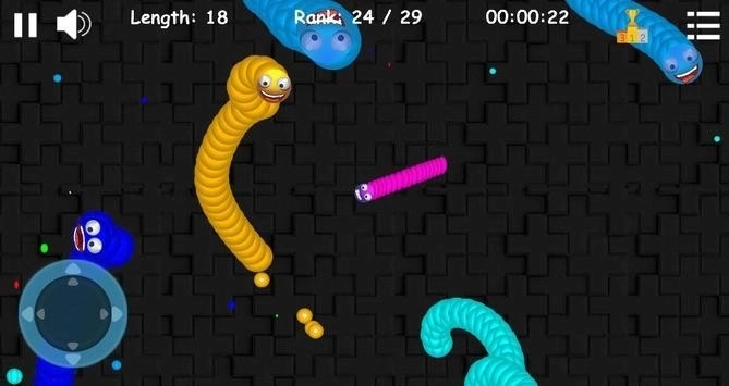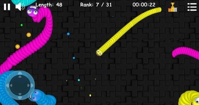 蠕动的虫子(WormsCreeping)游戏是一款非常有趣的贪吃蛇游戏,这款游戏在经典的贪吃蛇游戏基础上增加了很多元素,操作起来更加丝滑,玩家们需要操控虫子去吞噬地图上的彩色小球,虫子的体型会随着吞噬越来越大,你也可以靠着身体围杀比自己弱小的虫子,将它们全部吃掉。