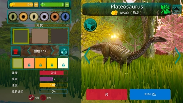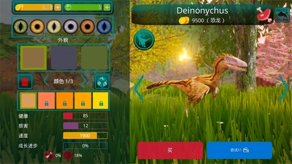 1、独特的成长机制!你的恐龙不会一开始就强大无比,需要通过觅食、饮水和躲避危险来逐步成长。面对如暴龙、重爪龙等凶猛掠食者时,必须小心应对,确保存活。