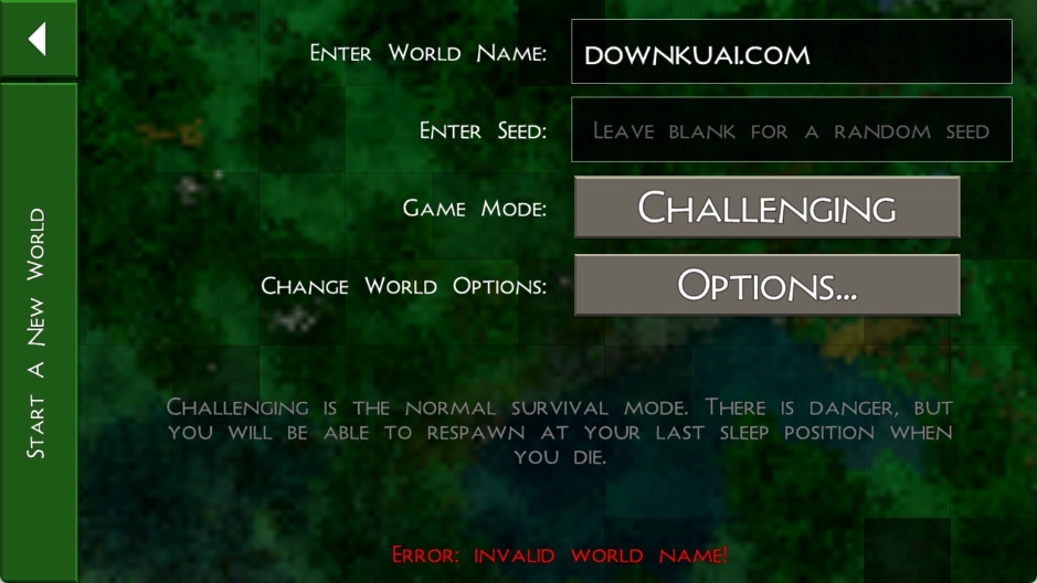 3、设置地图信息,包括名称、种子、游戏模式和出生点难度等参数。