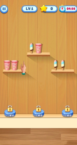 2、根据手指的指示将相同的物体移动到一起,满了3个就能消除。