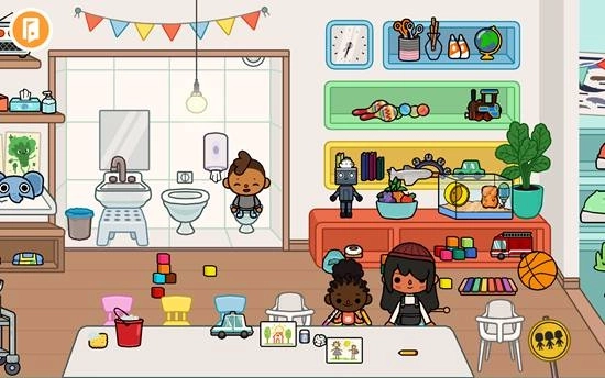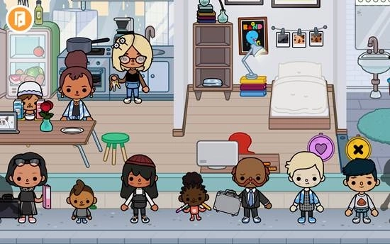 5、点击左上角的退出按钮返回室外,前往家中场景。屋内住着几位小朋友,所有人物和家具都可以自由操控,打造专属于你的家庭日常故事。