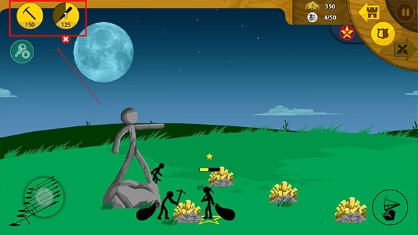 3、点击右上方按钮,可创建负责采集和进攻的士兵