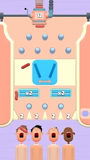 香肠普林科(SausagePlinko)是一款十分有趣的休闲益智游戏,它有着极具魔性的玩法机制。玩家需要通过操控香肠机,把美味的香肠精准投进下方人物的口中。游戏过程中,你得仔细判断香肠的下落路径,同时还要留意途中众多可能阻碍香肠掉落的障碍物。若想顺利通关,就必须将下方所有人物都喂得饱饱的才行。