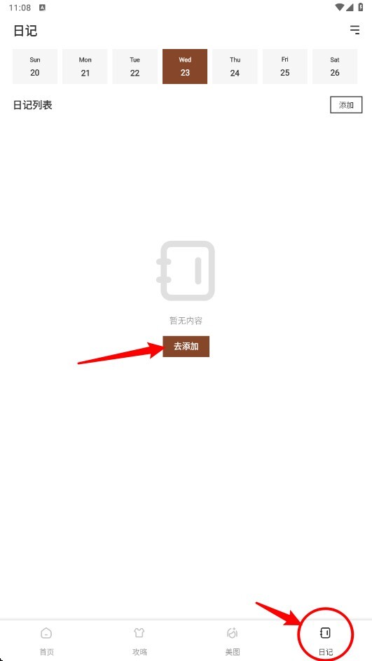 3、以穿搭日记为例,只需选择日记并点击“去添加”,就能进入日记编辑界面。