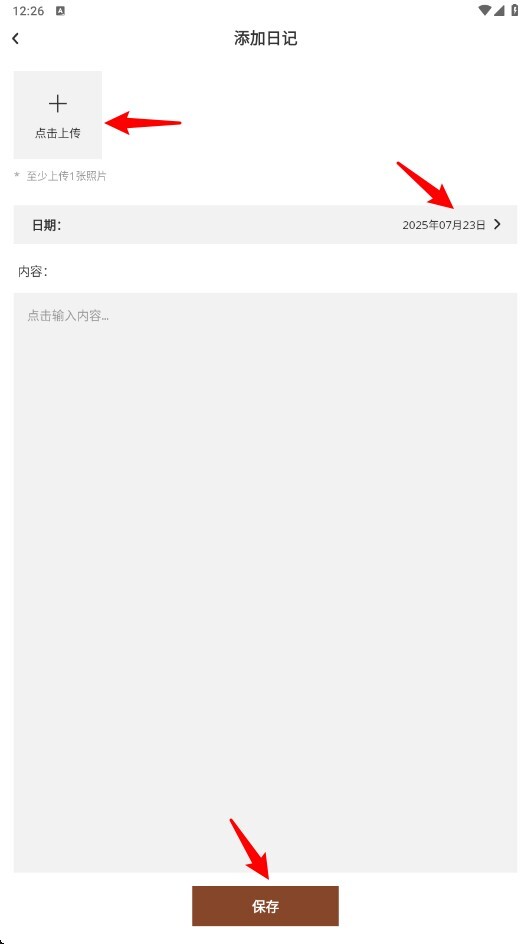 4、上传今日的穿搭图片,选定日期,记录下今日的穿搭灵感,然后点击保存,这样之后就可以随时查看了。