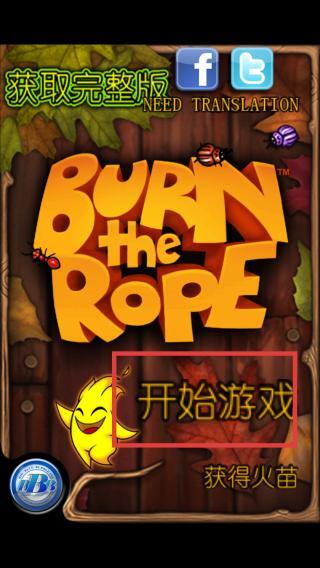1、玩家进入游戏后点击“开始游戏”按钮,即可开启烧绳子的挑战之旅。游戏开始后,玩家会遇到各种形状的绳子,需要通过操控火焰的燃烧方向来将其烧断。