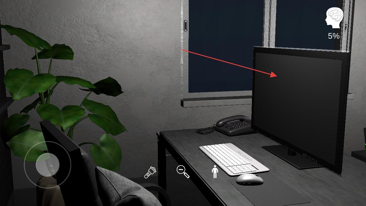 3、离开咖啡杯所在的区域,把注意力转向桌面上的电脑显示器,与显示器进行互动操作,试着开启显示器或者查看里面的内容,以此推动探索的进程。