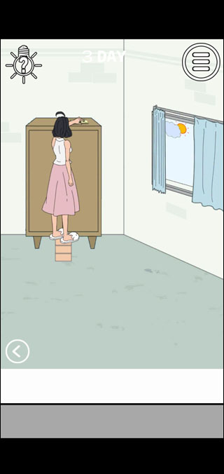 来到第三关,此关包含两个房间。首先,玩家需在第一个房间里扯下海报,点击获取海报后的三块砖头;接着进入第二个房间,将砖头依次叠放(注意:若一次性取太多砖头,会引发隔壁女生的怒气,导致闯关失败)。
